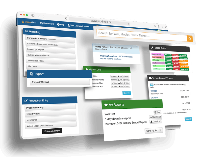 Everything is within easy reach for operators; tanks volumes, truck tickets, and gas meters are on one screen for fast, reliable data entry and instant production feedback.