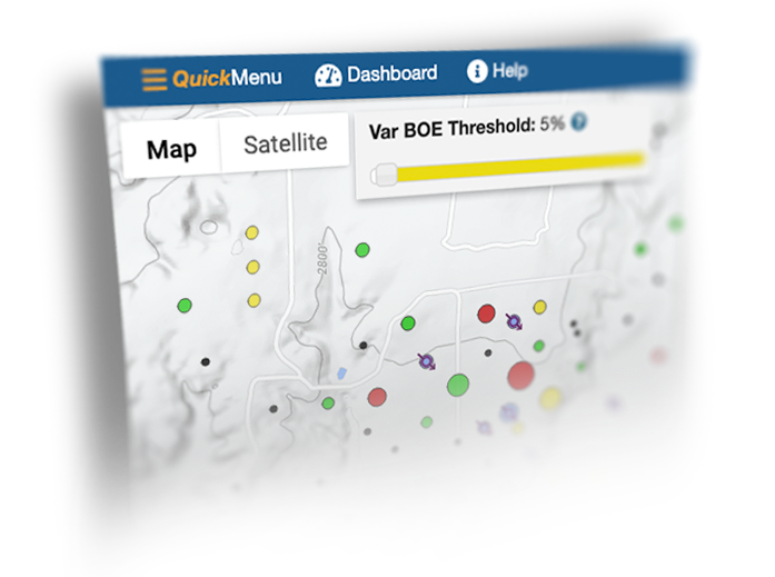 Wells with abnormally large changes in production - either by BOE or percentage - are flagged and highlighted on the dashboard